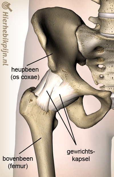 De kop en de kom van het heupgewricht worden bijelkaar gehouden door het gewrichtskapsel. Dit bestaat uit stevige gewrichtsbanden die er voor zorgen dat het gewricht niet uit de kom kan schieten. Beschadiging van de kapsels en banden kan heuppijn tot gevolg hebben.